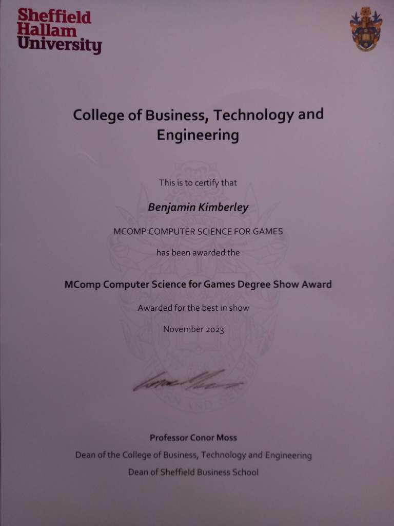 In addition to my first honours diploma, the university also awarded me with a Degree Show Award for Best In Show.