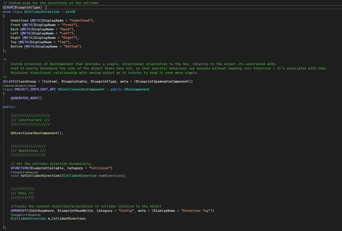 I would have also liked to have done more C++ for the project as well. I did get some learning and practice in the types and syntax used in unreal C++, but balancing for time, learning, what can be done quicker in blueprints, and keeping on track with our timeline left little wiggle room to explore as much as I would have liked. This is something I want to allocate more time for in future projects so I can more confidently apply tailored solutions and optimisations on demand, shifting away from the majority blueprint coding I have been doing into something better suited to my core strengths.